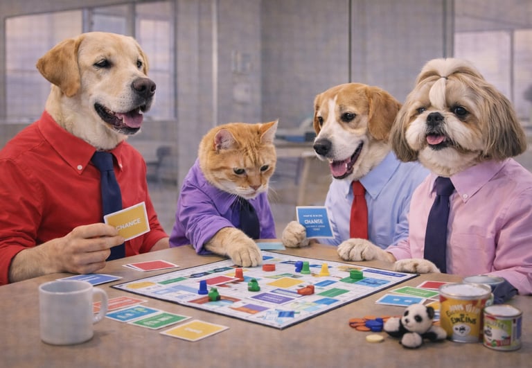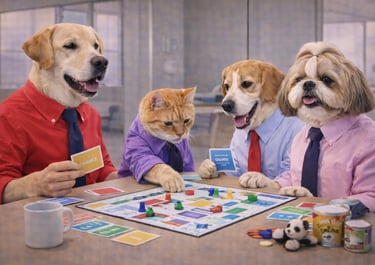 A playful, pet-inspired take on classic board and luck-based games, designed for digital and live engagement.